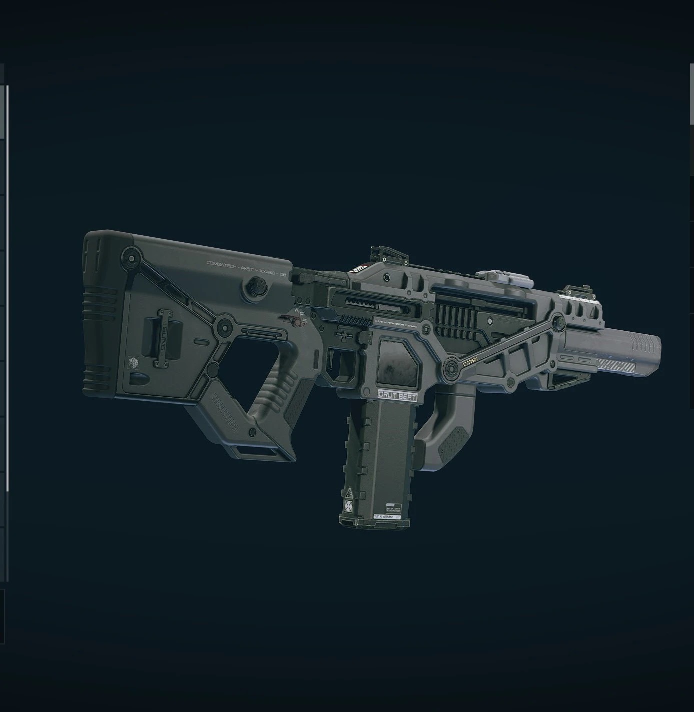 Changes the texture of the drumbeat assault rifle from white to black/dark grey.