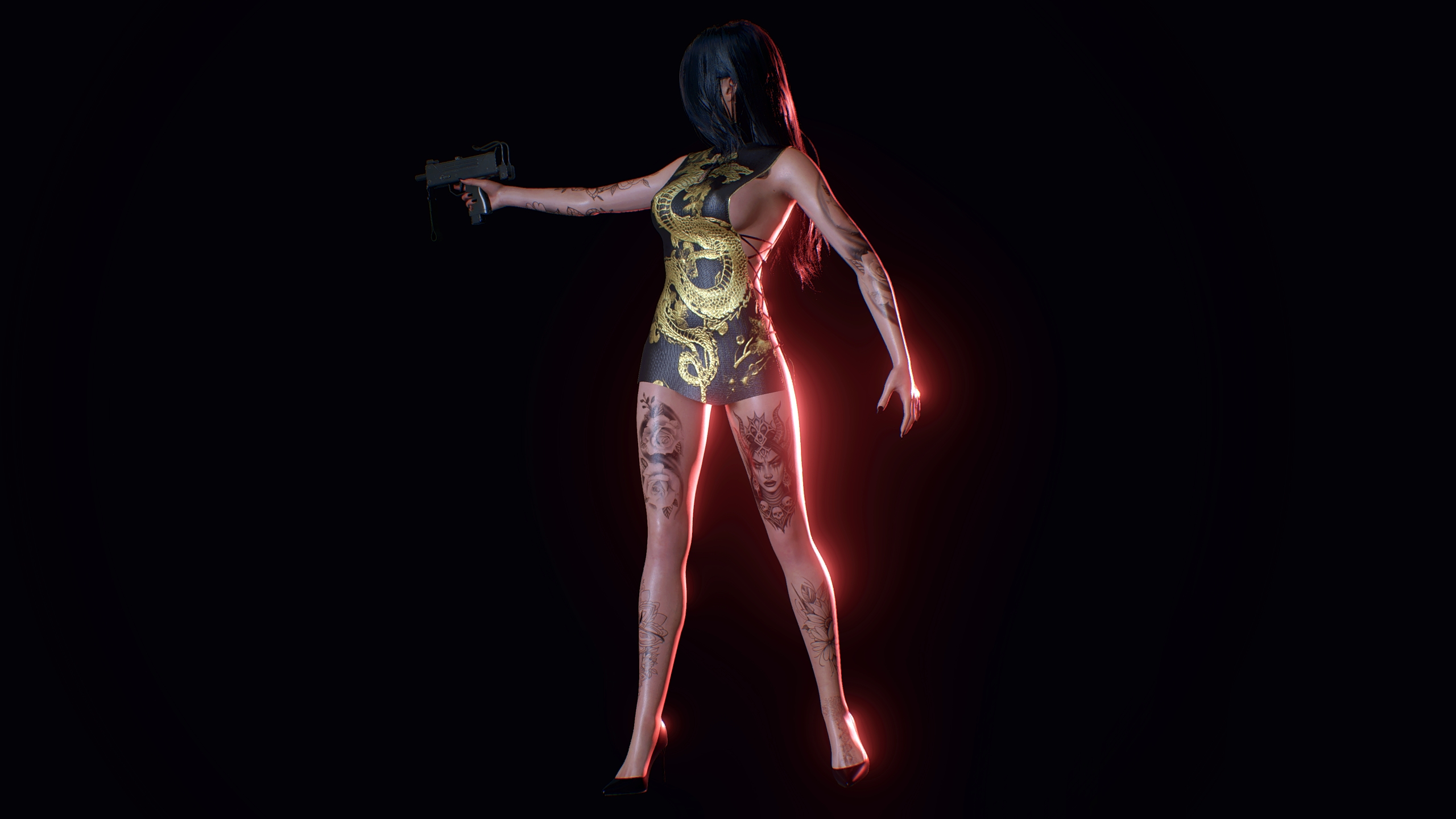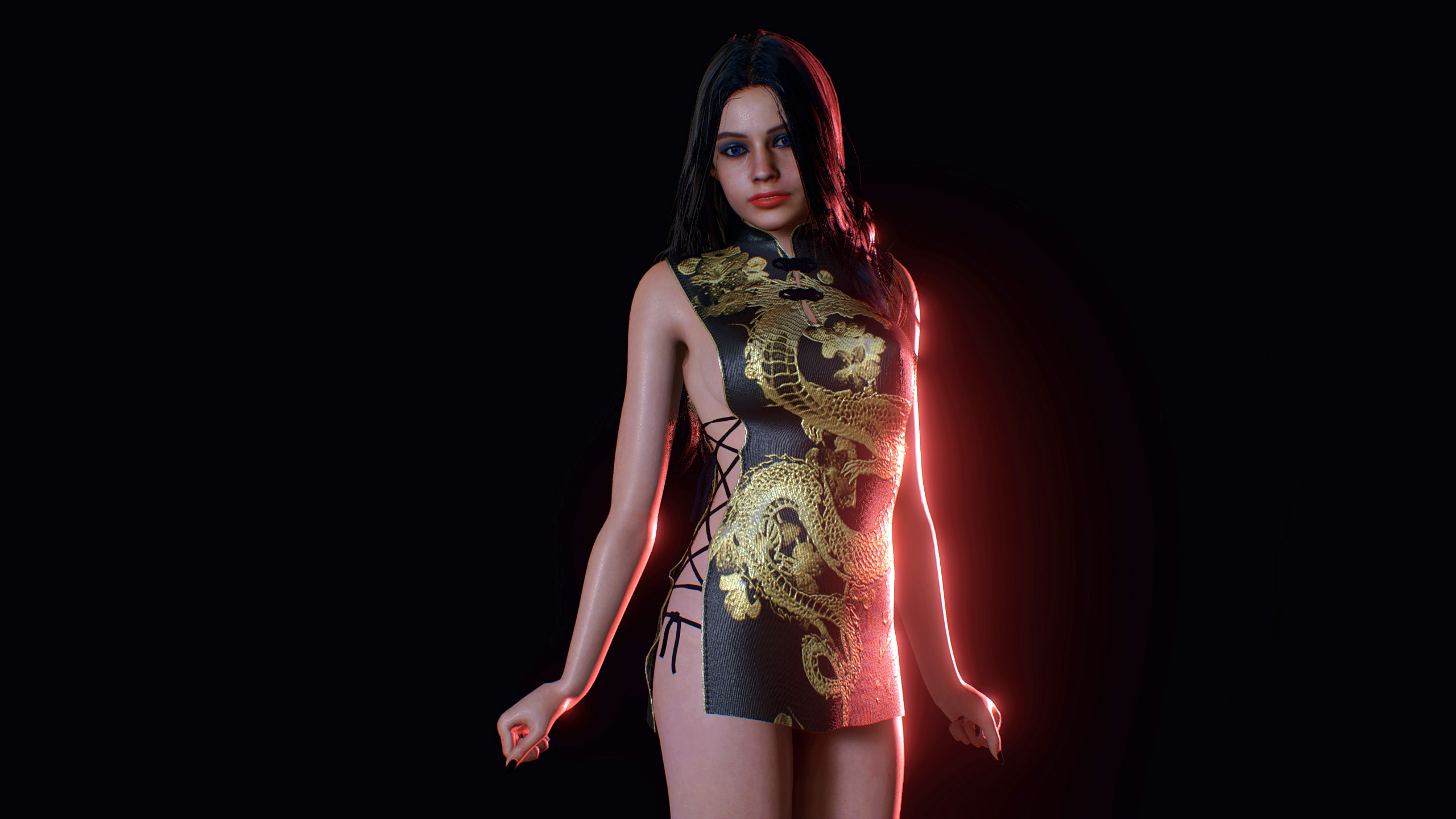 The mod adds an alternative outfit to the game Resident Evil 2 Remake for Claire Redfield (with body physics), "Claire Dragon Dress".