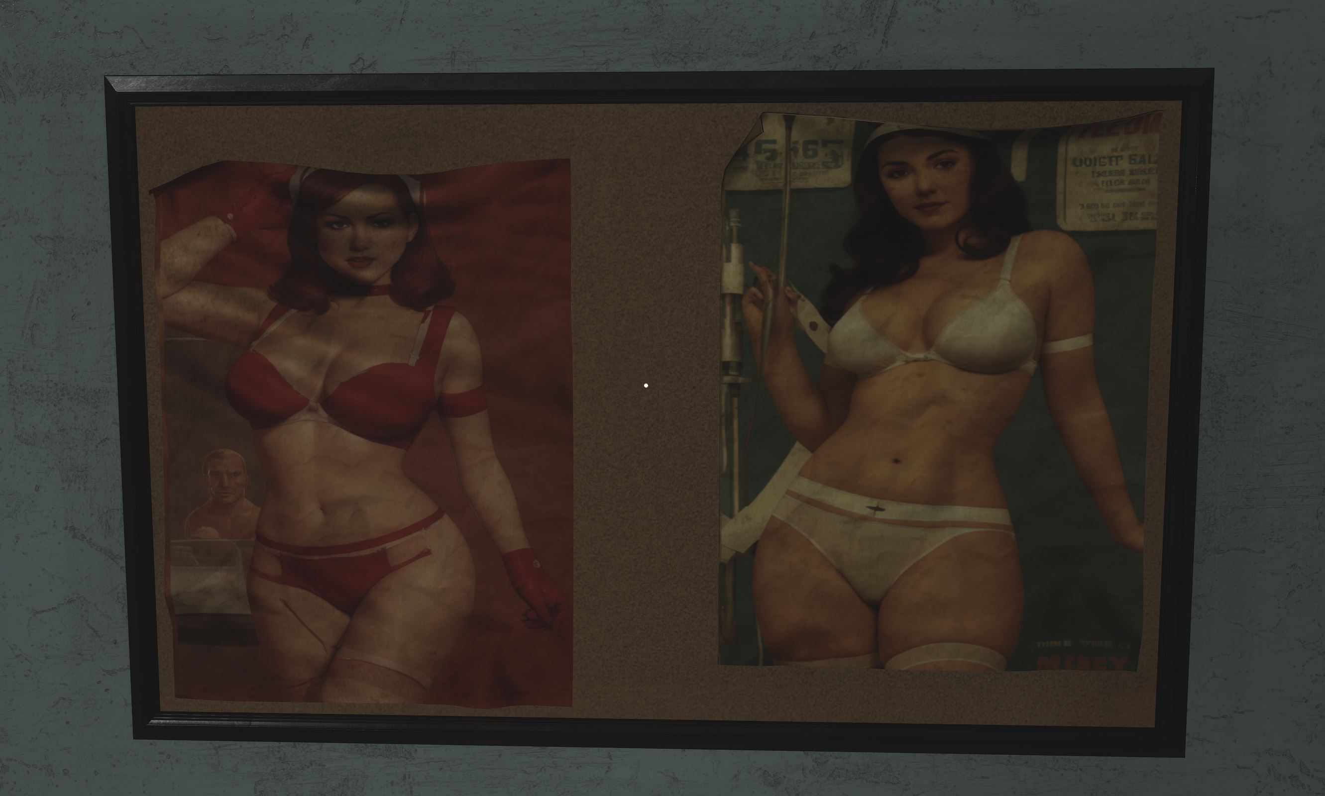 Replaces medical posters with vintage pin-up girls, some nude, some clothed. Currently replacing about 36 medical posters with another 24 in the next update.