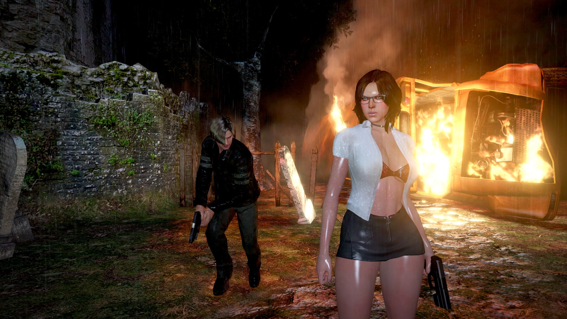 The mod adds a new outfit in a white shirt and skirt for Helena in the game Resident Evil 6.