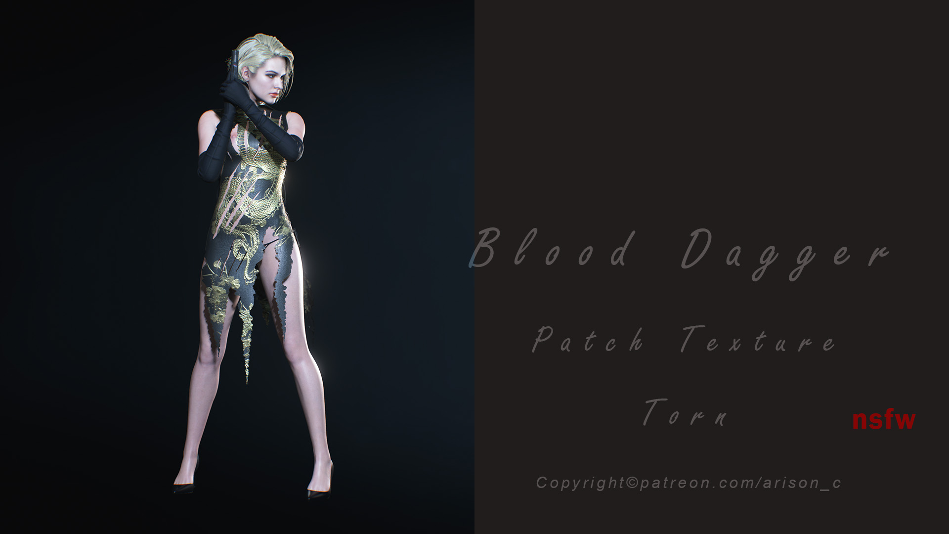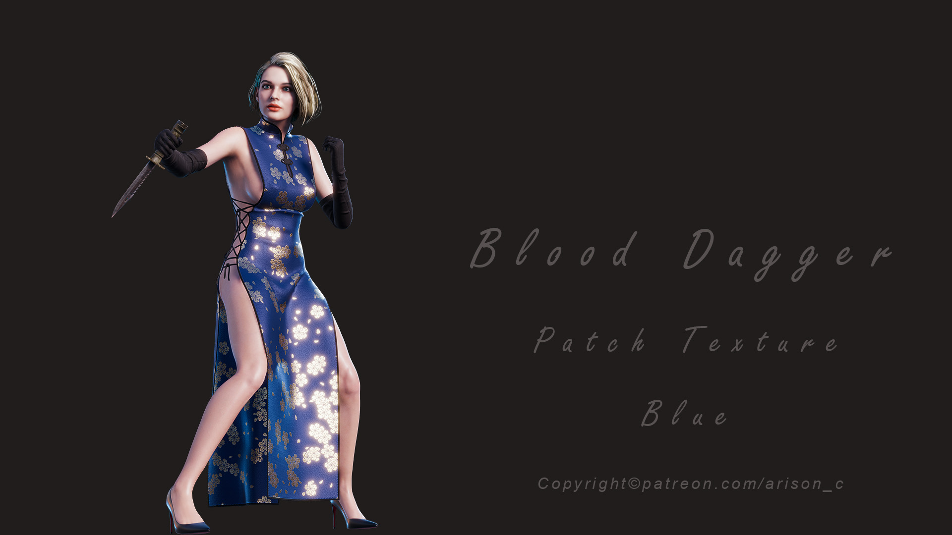 The mod adds an alternative outfit to the game Resident Evil 2 Remake for Claire Redfield (with body physics), "Blood Dagger RE2". Also the main mod includes various additions such as: Patch Ada, blue version of the outfit, long hair, red version, torn dress, NSFW version, white version, remove dirt. And also with Prepack even more customization for the mod, see screenshots.