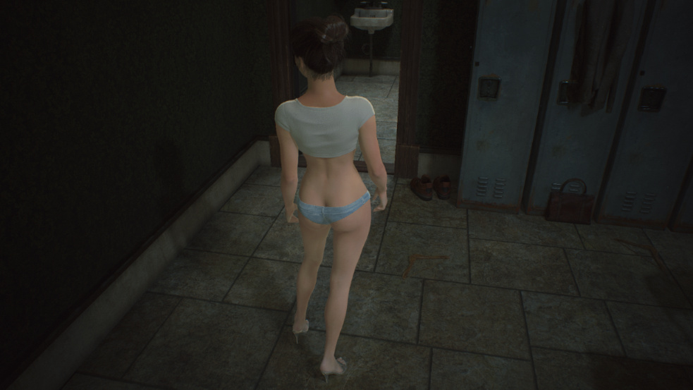 The modification brings another revealing costume for Claire to the game. The heroine will receive a short white top that practically bares her chest and a denim thong.