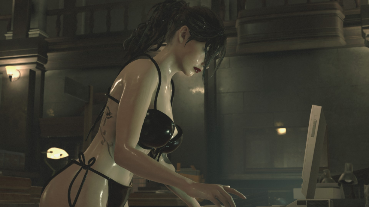 The sexy mod for the Resident Evil 2 remake will replace Claire's usual image. The main character has increased her chest and waist size, and now wears a revealing swimsuit. As an addition, the girl can boast of tattoos on her body.