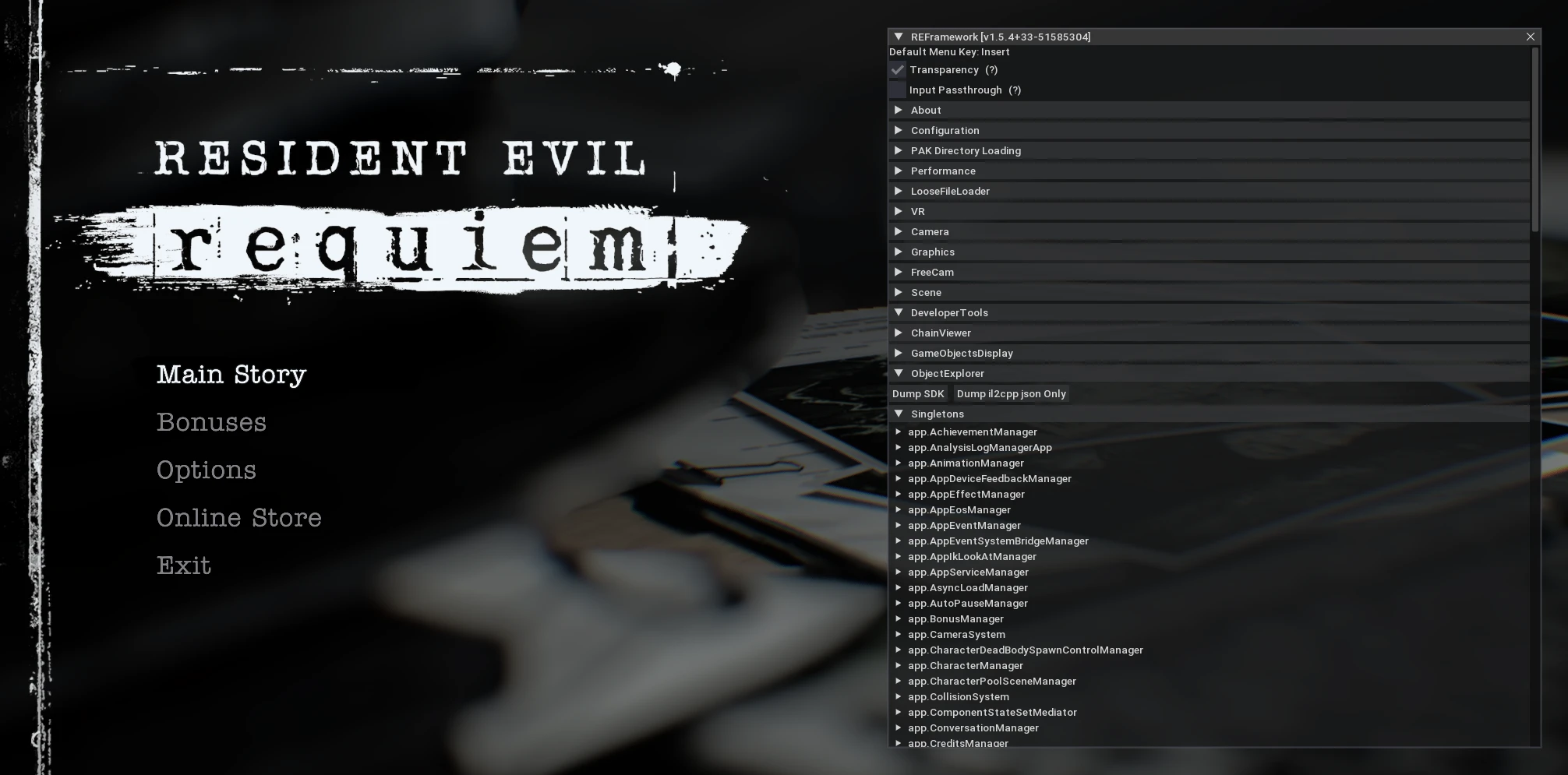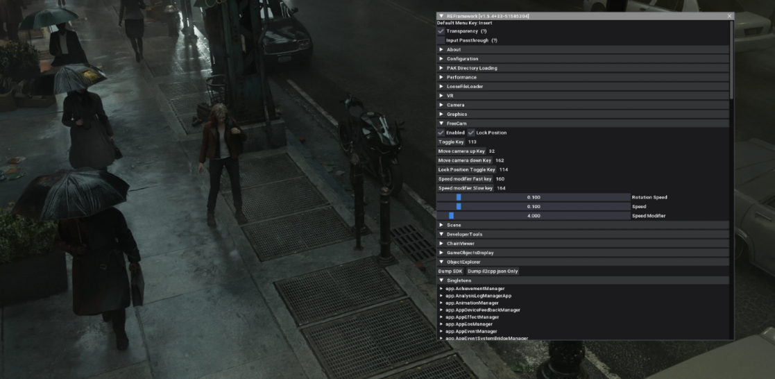 REFramework is a fundamental software tool and modding environment created specifically for RE Engine games. It provides a powerful Lua scripting API and includes a number of built-in fixes and features. This tool addresses crashes when using ReShade , adds support for ultrawide monitors , FreeCam , FOV adjustments , and Timescale control . It is a necessary foundation for most Resident Evil Requiem mods.