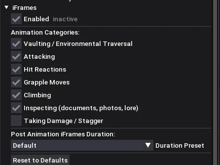 You can also adjust the duration of additional invulnerability after the animation ends (from 0.1 to 0.5 seconds).