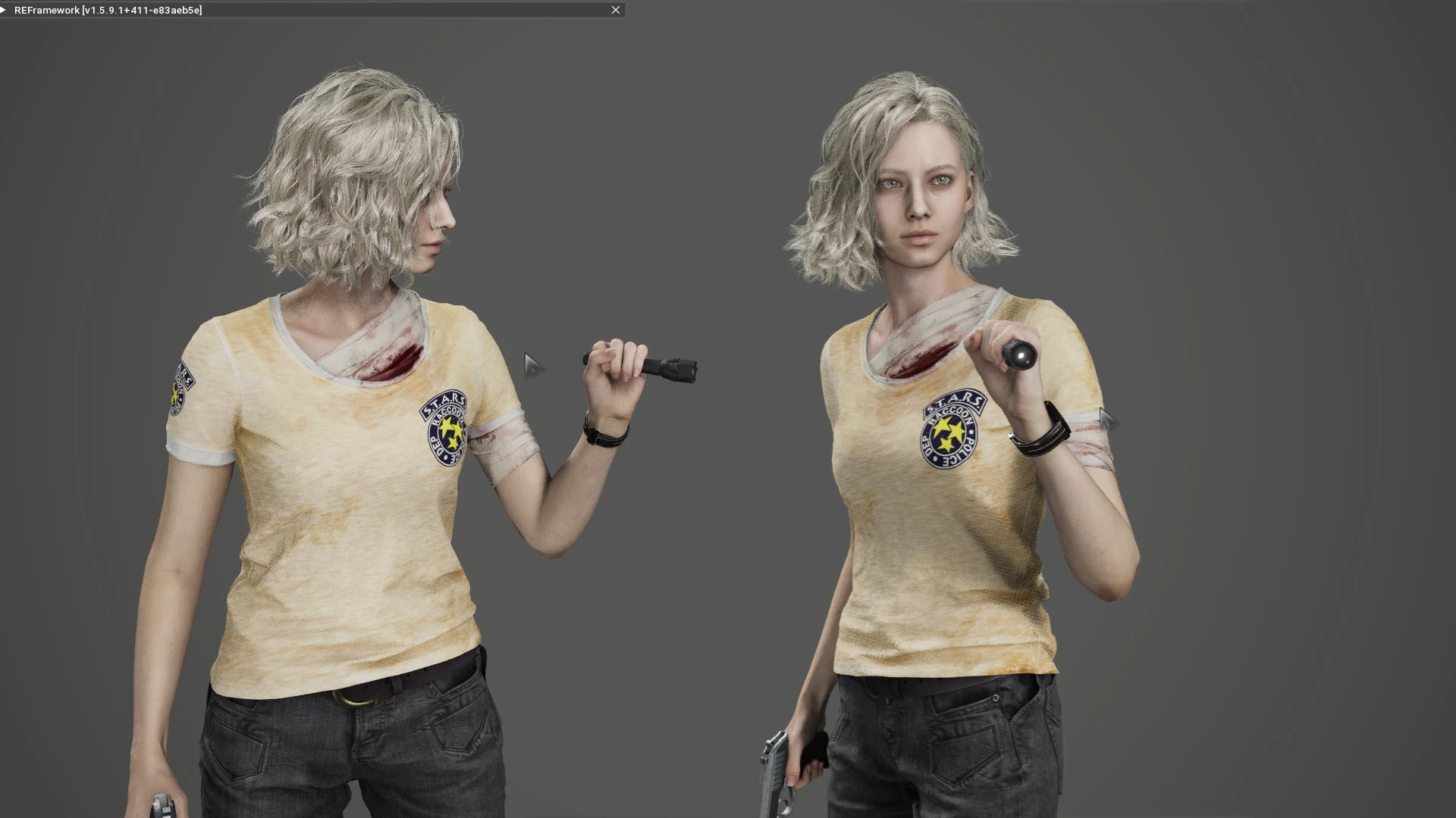 This mod is a test texture replacement for Grace Ashcroft. It replaces the character's default shirt with a t-shirt referencing the elite STARS unit . This allows Grace to have a look inspired by classic Resident Evil characters like Jill Valentine or Rebecca Chambers.
