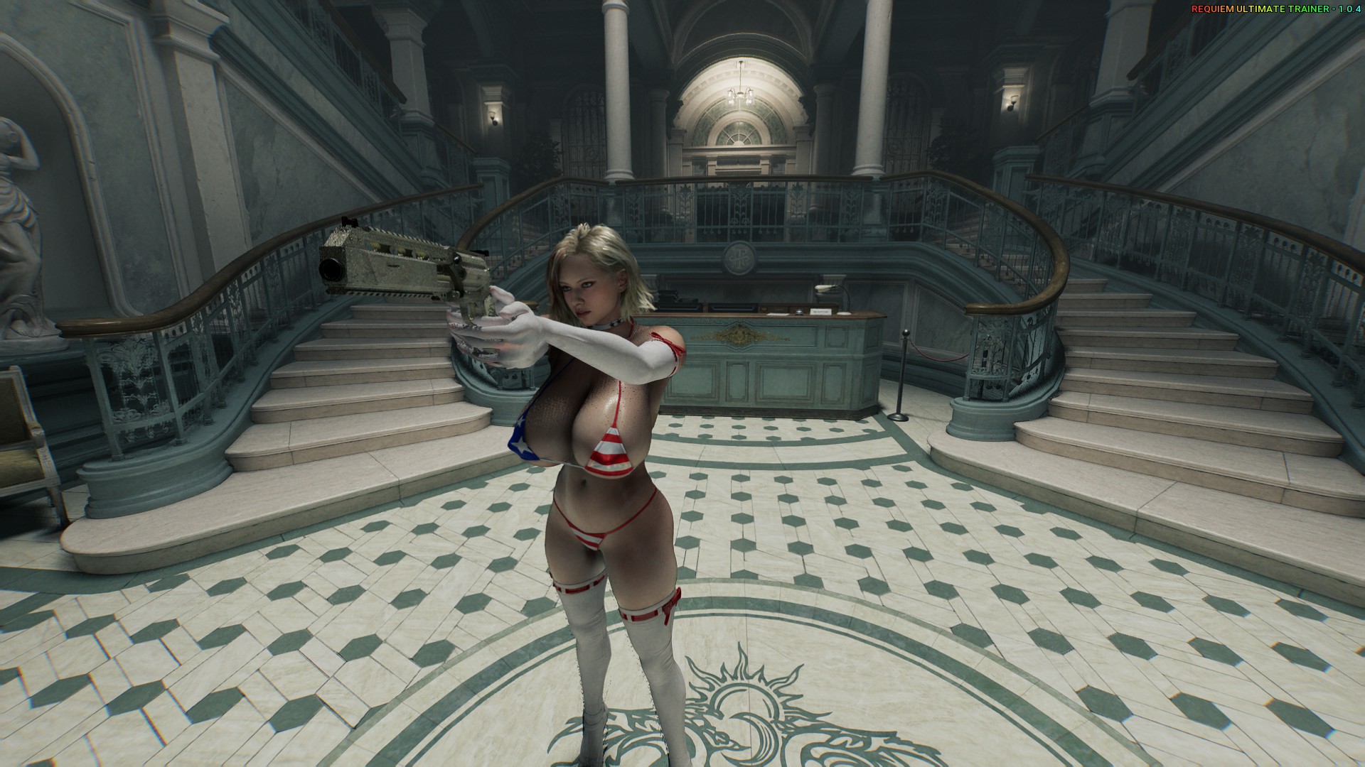 This modification completely replaces Grace's appearance with that of a model in a revealing bikini (Sugoi Dekai). It replaces Noir's costume.