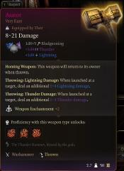 Describe:A thrown magical Hammer that will return to you so that you can throw it again.Author: MooneaterwolfInstall:To install, extract the .pak file and drop it into the Data folder of your BG3 installation