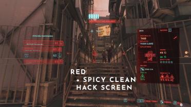 Introduction: Change the color of the hack screen. If you want to remove the veette and some other things, you can use it with the "Spicy Clean Hack Screen" mod clean green version. Author: Reaver Install: Move the selected .archive to "Cyberpunk 2077 \ archive \ pc \ patch"
